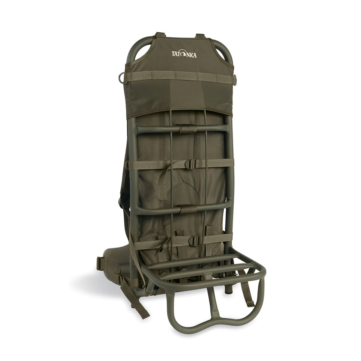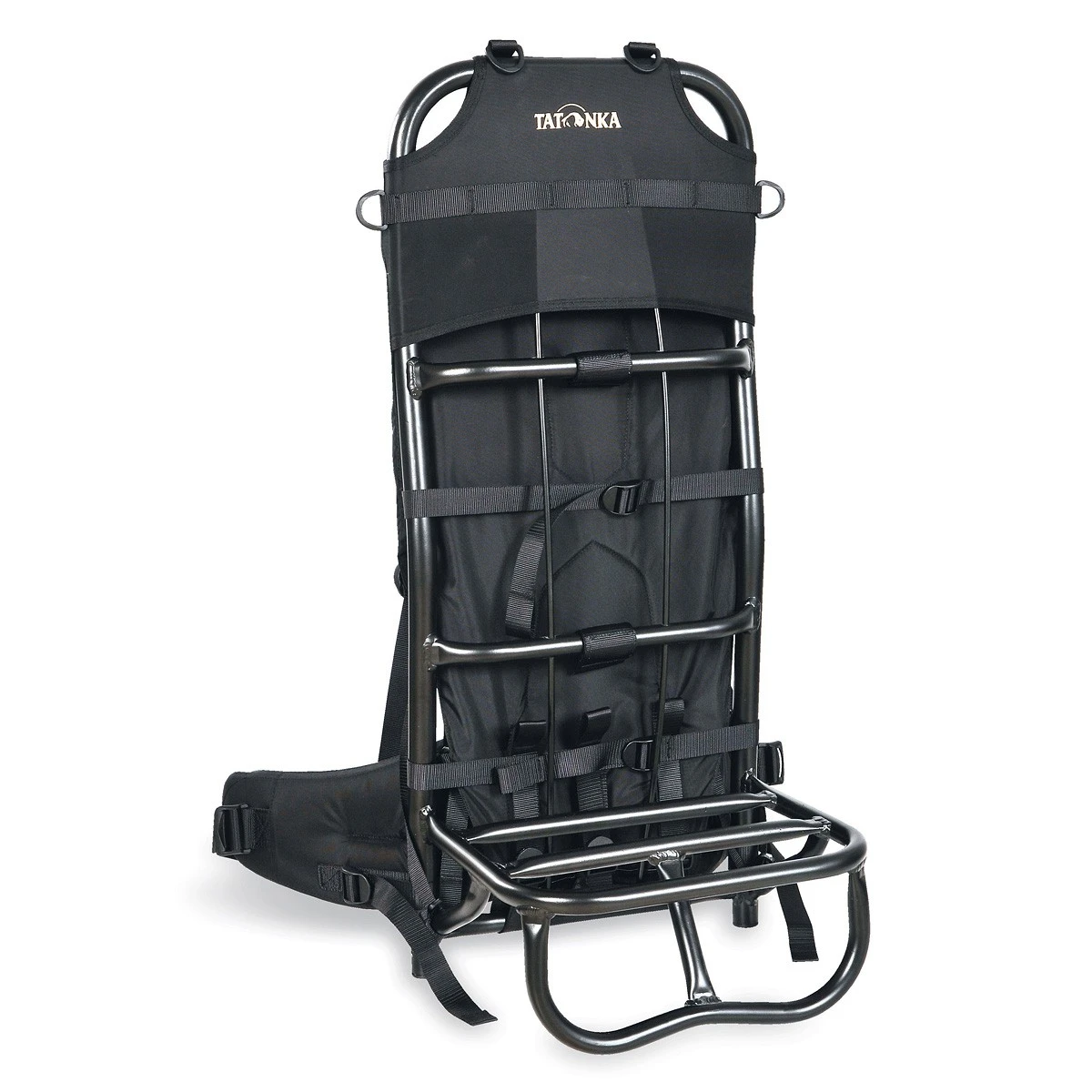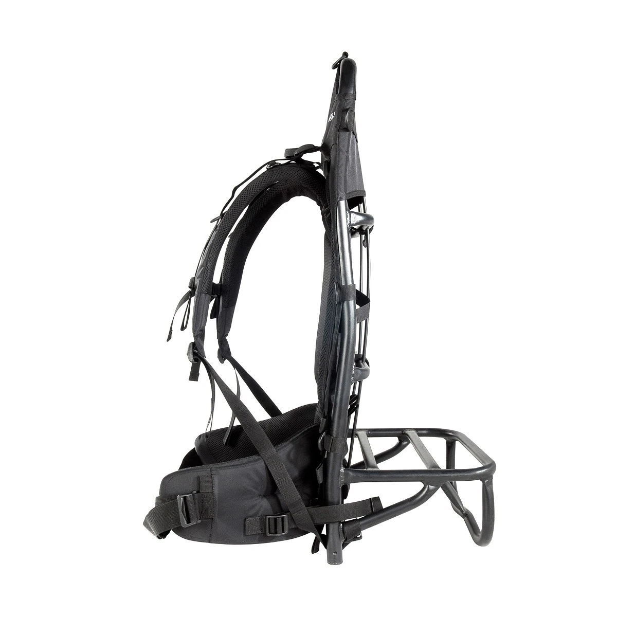 Le cadre en aluminium permet de poser sur le sol la claie de portage. Profondeur de la zone de chargement : 25 cm.