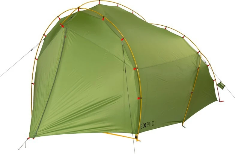 La configuration de cette tente avec des arceaux externes en exostructure permet une mise en place rapide. Vous pouvez monter la tente entière ou uniquement le double-toit. La chambre intérieure peut ou non être montée en simultanée avec le double-toit.