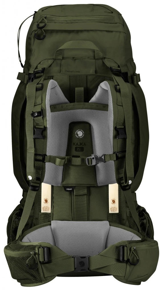 Ce gros porteur est doté d’une armature préformée en bois lamellée suédois. Le système de soutien est conçu pour distribuer de manière homogène les charges lourdes, et le système d’ajustement Perfect Fit, simple à utiliser, facilite le réglage en fonction de la corpulence du randonneur (longueur du dos et largeur entre les sangles d’épaule).