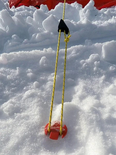 La sardine SwissPiranha peut-être enfoncée directement dans le sol en utilisant un pied, un marteau, le dos d’une hache ou une pierre.