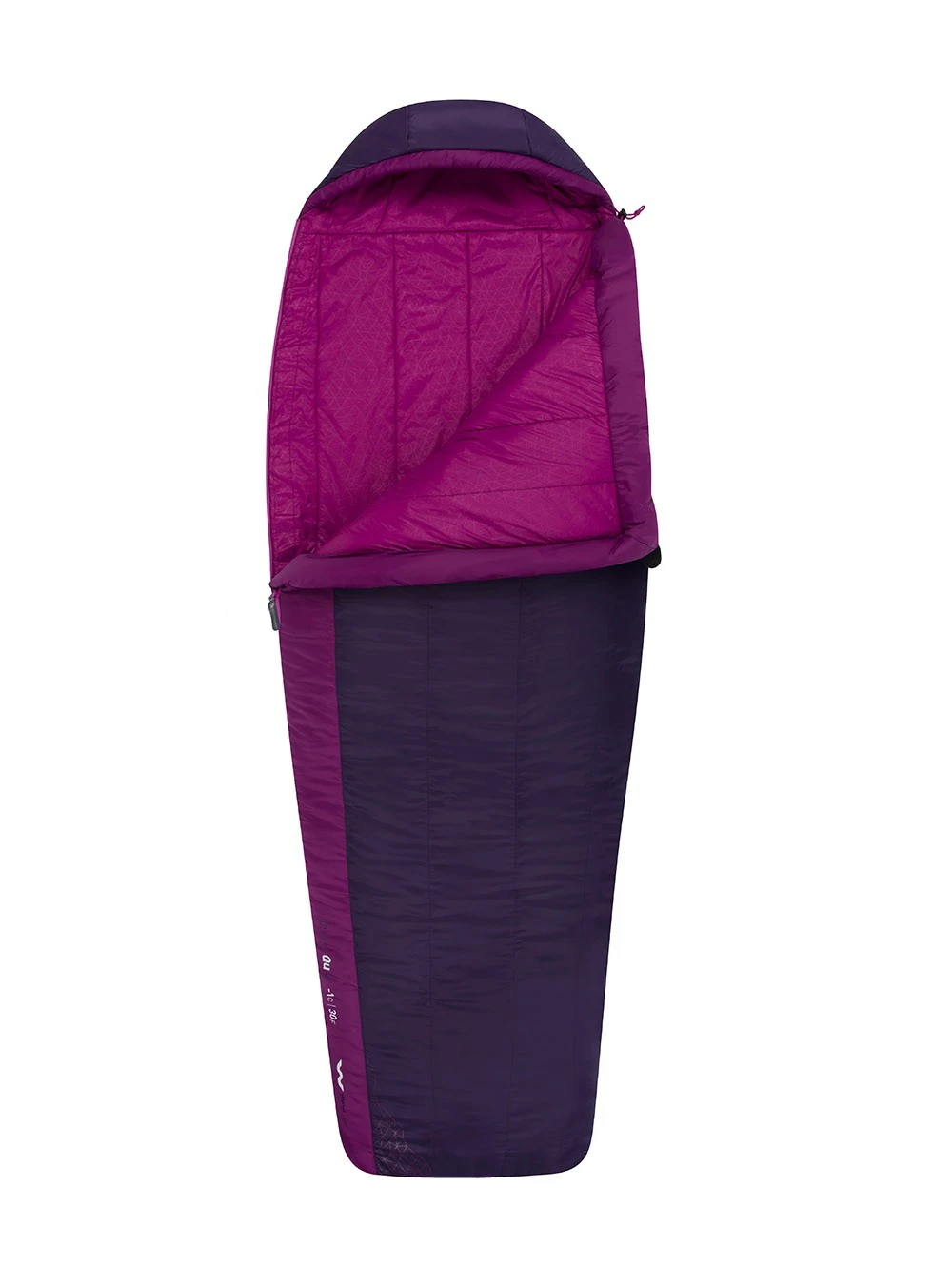 Le Quest QuII de Sea To Summit est un sac de couchage conçu spécialement pour les femmes. Il s’agit d’un couchage doté d’épaisses couches d’isolation en fibres synthétiques Waveloft. Le Quest QuII a plus de garnissage au niveau des pieds, limitant ainsi la sensation de froid. Ce sac de couchage offre une température confort de -1°C, si bien que vous pourrez l’utiliser durant 3 saisons : au bivouac en montagne, nuitées en refuge…