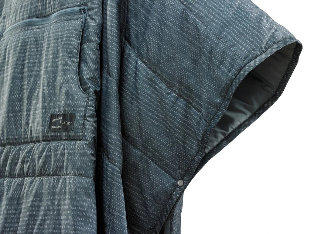 Le Honcho Poncho de Thermarest est un poncho chaud garnit d’une fibre creuse eraLoft. L’isolation synthétique compressible repousse l’eau et possède une excellente régulation de la température. Le tissu extérieur est en polyptère résistant à l’eau.