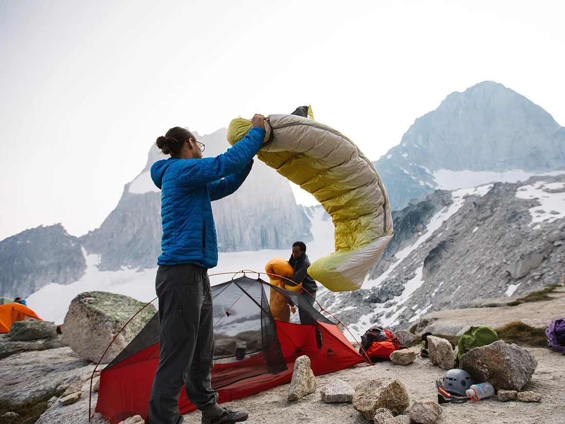 Il est doté d’un garnissage différentiel : l’isolant en duvet d’oie est plus dense sur le dessus que dans le dos, ce qui permet de diminuer le poids global et de concentrer la chaleur aux endroits stratégiques. Dans le dos, c’est votre matelas qui fait office d’isolant, ce qui est logique, puisqu’en dormant, votre poids écrase le garnissage, donc limite son apport thermique. C’est pour cette raison que le Parsec 20F/-6C est livré avec 2 sangles SynergyLink, maintenant votre matelas de sol sous le sac de couchage. Ce dispositif empêche de glisser en dehors du matelas et l’isolation est ainsi optimisée !