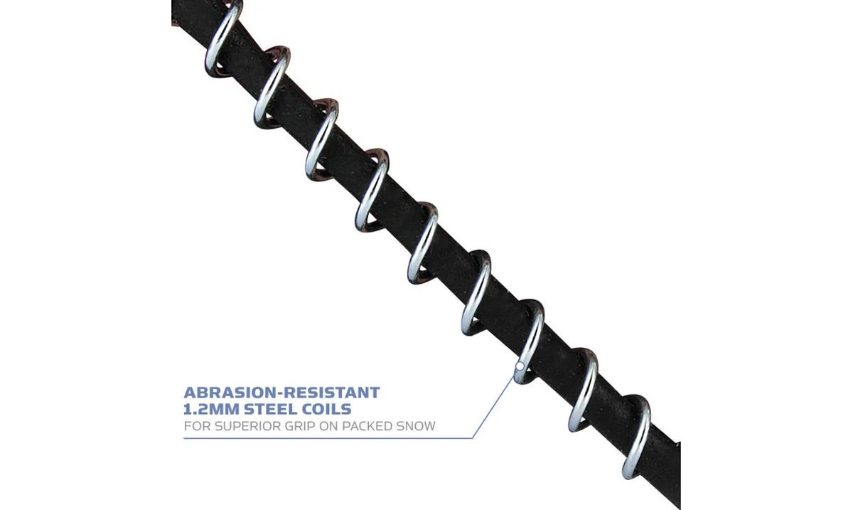 Chaines anti-glisse et antidérapantes prévues pour un usage de tous les jours. Elles vous éviteront les chutes et les dérapages éventuels. Grâce à cet équipement, vous pourrez partir sereinement en balade, au travail, même si le trottoir est recouvert de verglas.